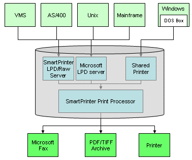 - LPD-LPR protocol. It is done by using the "TCP/IP Print Server" Service of the server on which the SmartPrinter software is running.